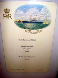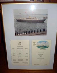 SOLD The 1976 Summer Olympics, officially known as the Games of the XXI Olympiad, were held in 1976 in Montreal, Quebec. The Games were opened by Queen Elizabeth II (as head of state of Canada) and the several members of the Canadian Royal Family attended the opening ceremonies. Princess Anne of the United Kingdom was the only female competitor not to have to submit to a sex test. She was a member of her country's equestrian team. Queen Elizabeth II was in Montreal from July 13th to July 25th. She was joined by the Prince of Wales, Prince's Andrew and Edward. The following is a menu for a dinner hosted for Her Majesty. It includes the menu and the evening's entertainment. The entertainment and menu cards are framed with a lovely print of Britannia. The Britannia was launched 16th April 1953 by HM Queen Elizabeth II. The Royal Yacht Britannia has helped to make The Queen the most traveled monarch the world has ever known. Not only has The Queen and her family traveled the world on Britannia, but the world - its statesmen and leaders - has visited them on board. From Sydney to Samoa, The Queen's guests have been entertained just as they would be at a royal palace on British soil. $1,595.00 plus postage