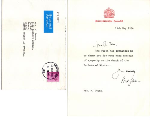 Item 3100 64 year old thank you note from secretary to Her Majesty